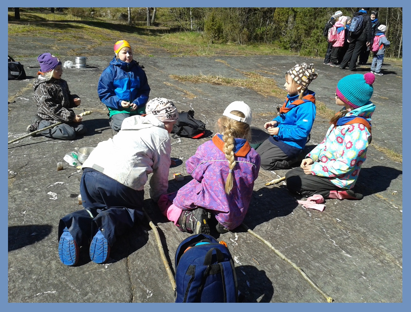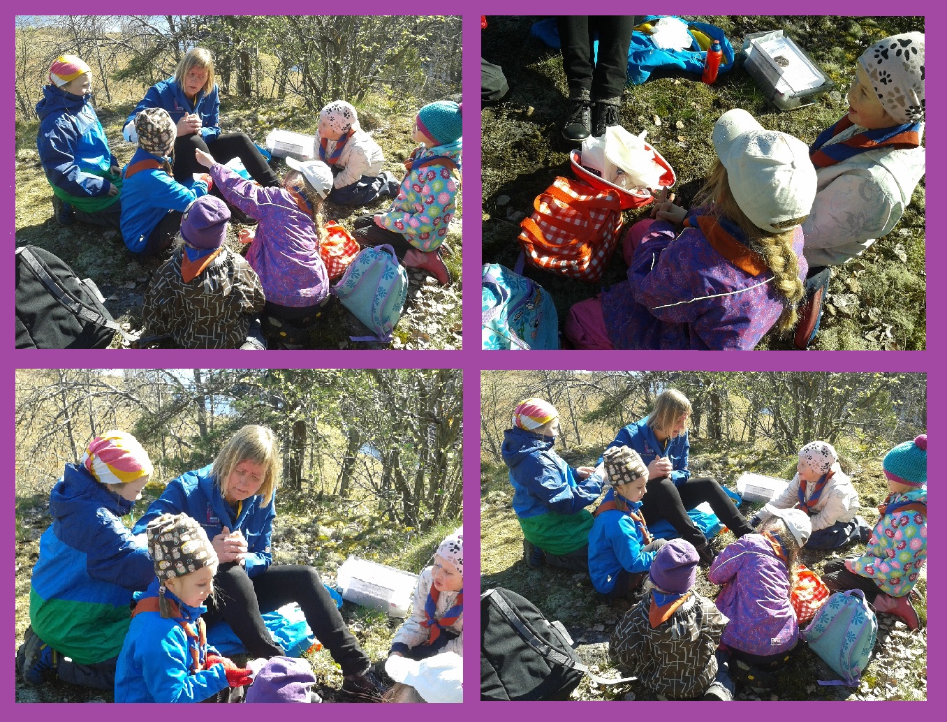 Här försöker scouterna komma ihåg vilka alla diamanter som fanns i väskan. När de var klara med den uppgiften skulle de ännu göra några knopar.